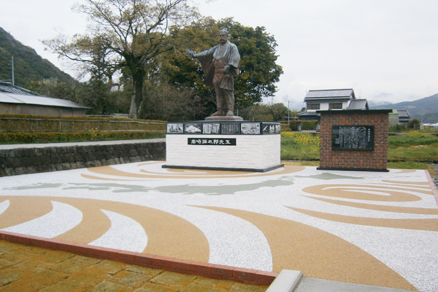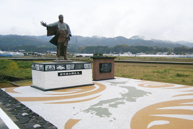 三菱財閥の祖・岩崎弥太郎像の周囲をファイバーレジン舗装で施工しました。美しい日本地図が描かれています。