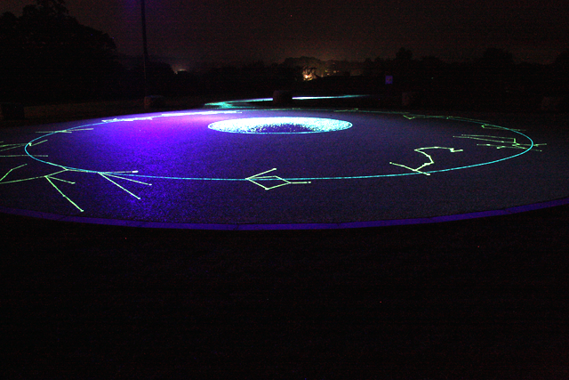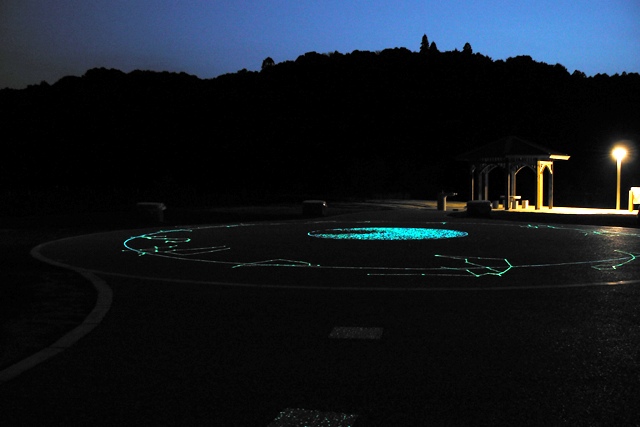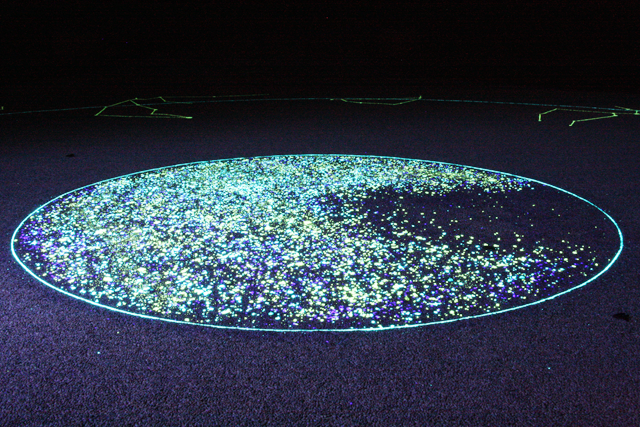 ファイバーレジンの上に、蓄光石を配置し、夜は地上で星空観測ができます♪