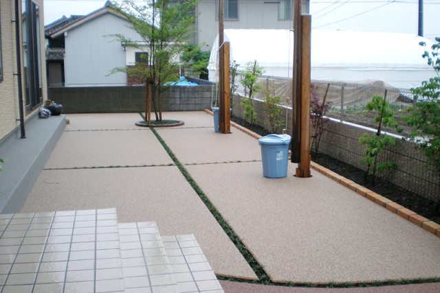 高畠技工は高知県では数少ない"ファイバーレジン透水性舗装"の施工を行っています。